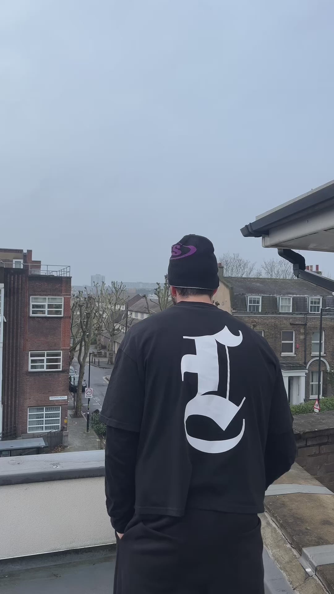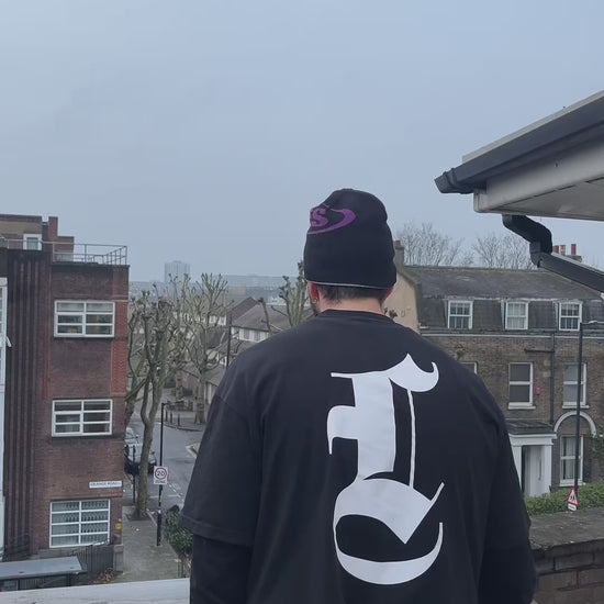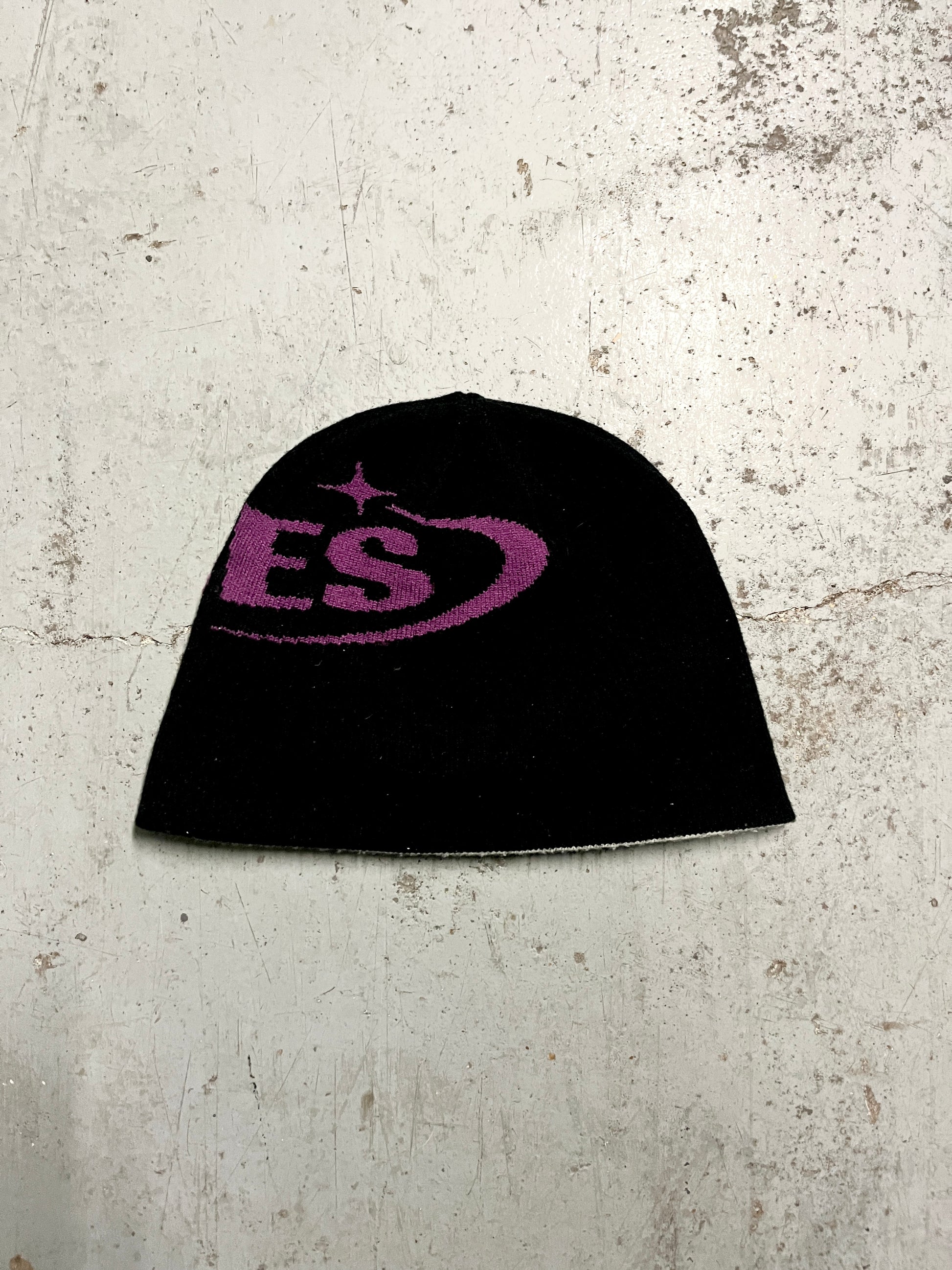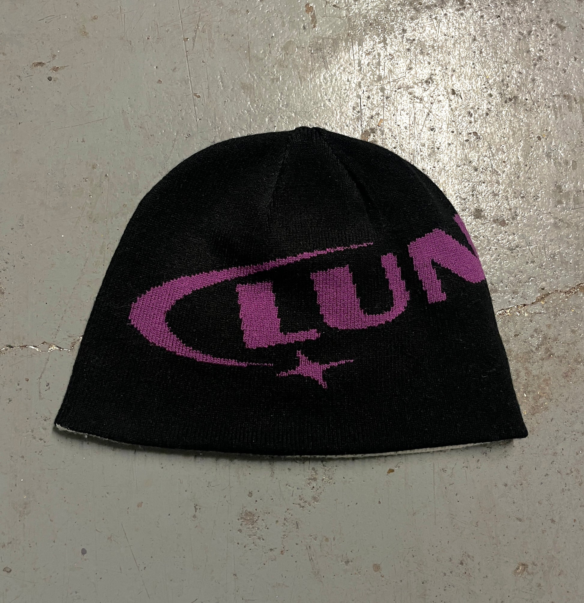 Reversible beanie in Grey/White and Black/Purple